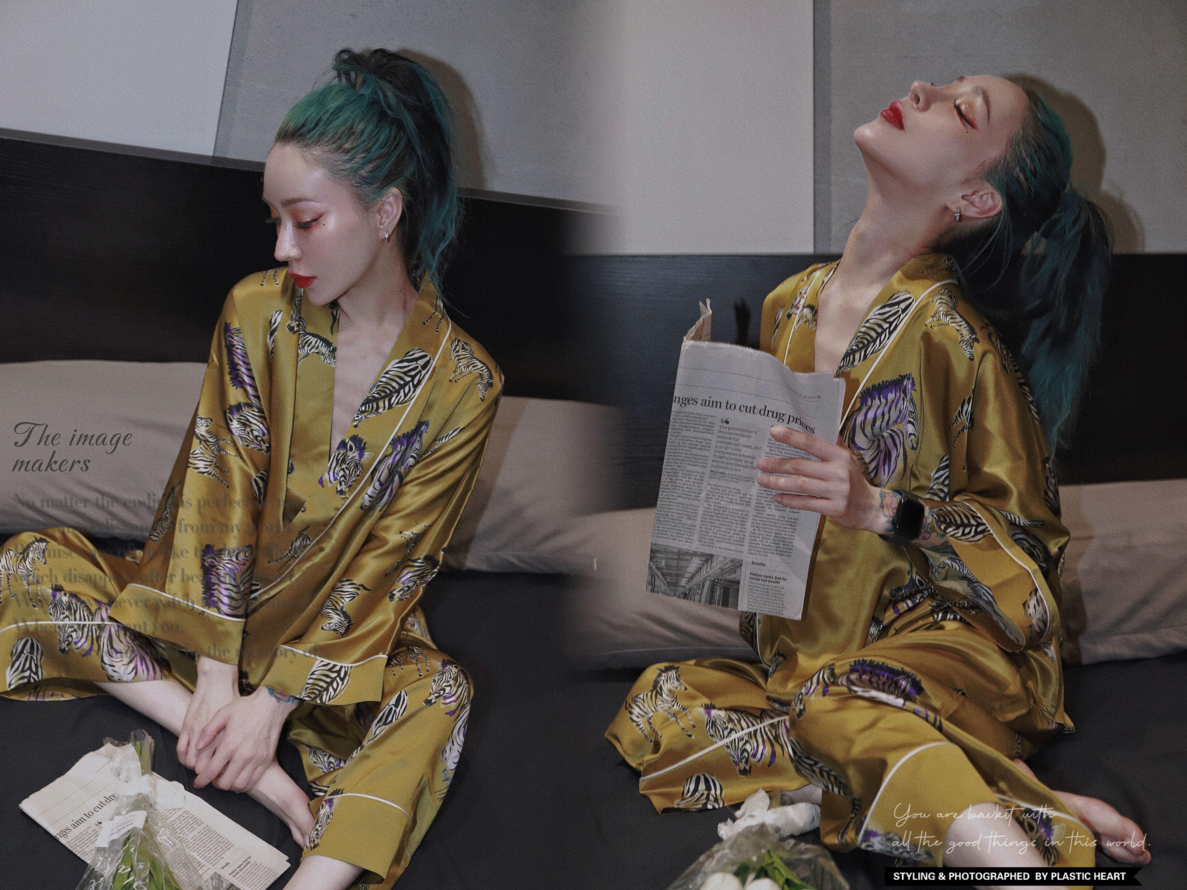 好看的睡衣是可以外穿的,还可以当做一套服饰来拍照,穿着真丝套装逛海滩,约会闺蜜的照片简直是神器。这套睡衣是新宠,强烈的中国风设计视觉果,重磅桑蚕丝,款式大气,是我喜欢的高级金色系。来自丝侬【斑骓集·对襟款】套装。品牌给这个颜色的命名叫——伽罗