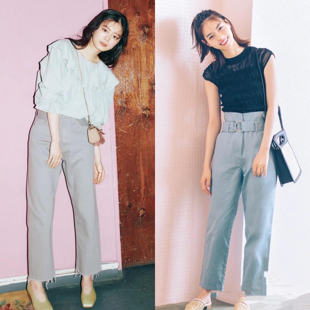牛仔裤的面料,本身就是一种垂坠硬挺的风格。尤其是硬质的牛仔,塑形性会更强。搭配高腰的直筒裤设计,掩盖胯部粗壮,整体风格更加的清爽显瘦,搭配一字带凉鞋也是洋气的。