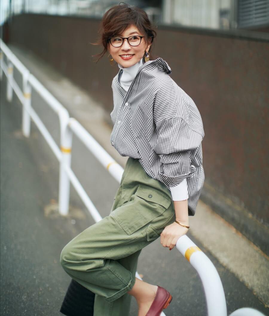 竖条纹的衬衫一直是显瘦的利器,而细格纹状的衬衫也有着高级范儿,这两种单品都能够成为中年女性的偏爱对象。图中的这款格子衬衫采用的是细密格纹的拼接,因为采用的是经典的黑白两色,并不显得繁琐。内搭一件简单的白色高领衫,自然能够营造出惬意的穿衣风格和休闲的意味。腿型不够好看,要选择版型宽松的裤子来隐藏赘肉。