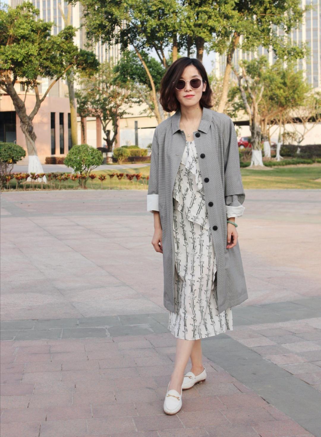活泼的色彩无法打动年龄偏大女性的内心,相反简单的灰色就能够获得她们的宠爱。图中这件浅灰色的长款外套搭配连衣裙来穿,更符合春季的特征。万物复苏之时,也能够美出轻盈的体态。只是在连衣裙色彩的选择上,自然要和灰色形成较高的融合度。选择一款带有荷叶边拼接的白色连衣裙,上面用一些简单的图案作为修饰,就能够美出高级的范儿。