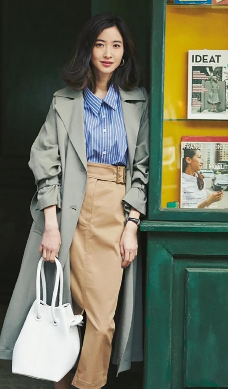 竖条纹的衬衫不仅能够当做外套和防晒衫来穿,还能够作为内搭与常见的风衣组合在一起,形成一套优雅又不失干练风范的造型。这种穿搭模板可以被职业女性所借鉴,它不会打造出过于庄重的风格,也能够带来一丝专业的气质。下半身可以套上直筒裤,这种宽松的裤装会很显瘦,也和风衣具有很高的匹配度。