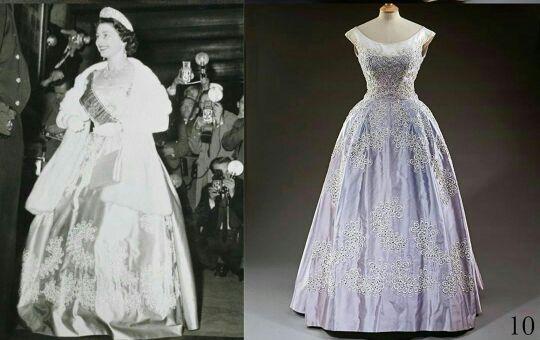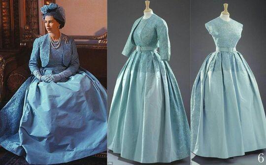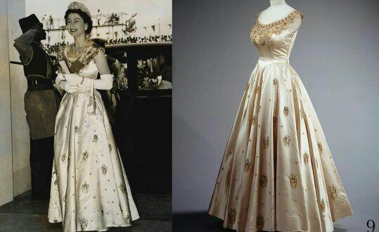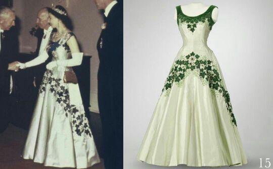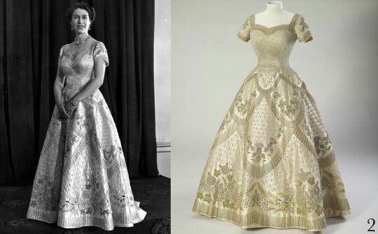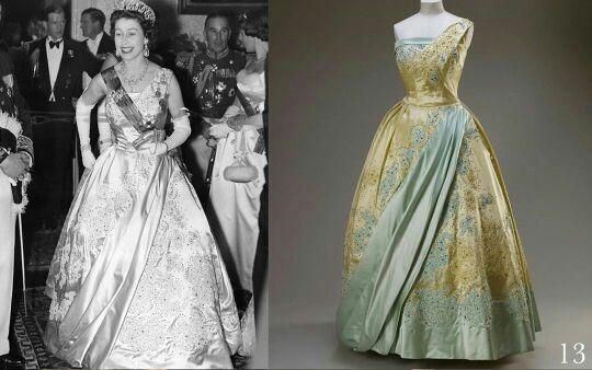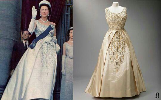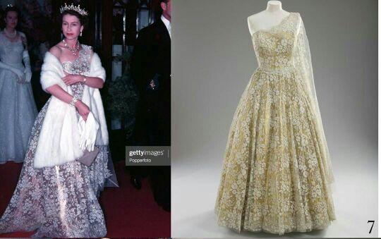 礼服是伊丽莎白女王在60年代的爱,曾经身穿此礼服出席过电影的首映式也亮相过国会开幕式,经典华丽的一件。