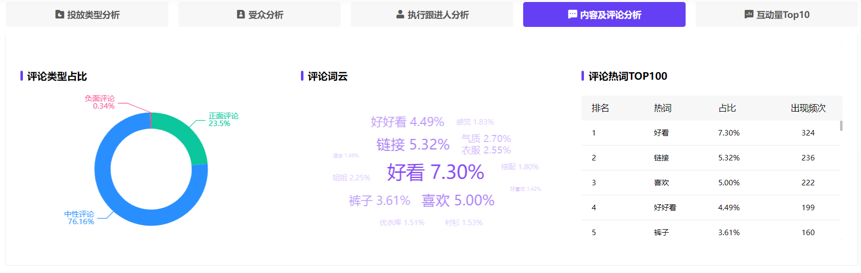 更加关注身材问题,比如《31岁140斤|适合胖女孩的秋季穿搭!舒服显瘦》直接提到年龄、体重、季节、胖瘦等,身材相关关键词占比为18.60%。