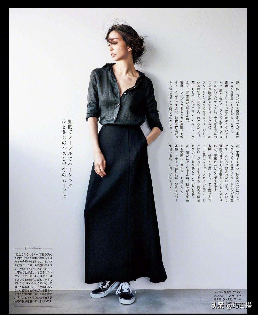 从这篇文章中的穿搭来看,比较理想的单品有三类,感兴趣的姐妹可以码一下。第一类是“纯黑色单品”,因为只有它,可以正儿八经的修饰身材,衬托肤色、展示不同美感。