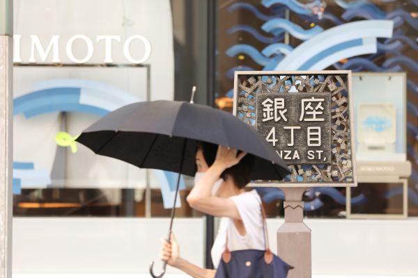 2020年8月15日,行人走在日本东京银座街头。新华社记者 杜潇逸 摄