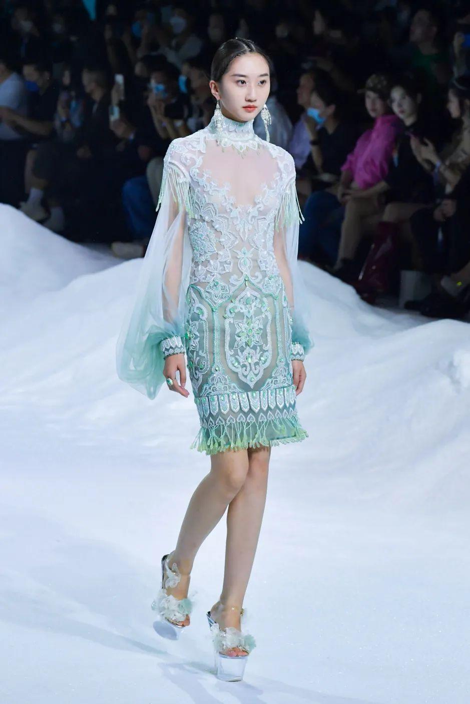 中式美学搭配手工立体丝绫雕刻,神秘飘逸;环保材质与非遗结合,推动服饰创新,而恰到好处的透纱材质,展现若影若现高级质感,尽显东方女性的典雅灵动。