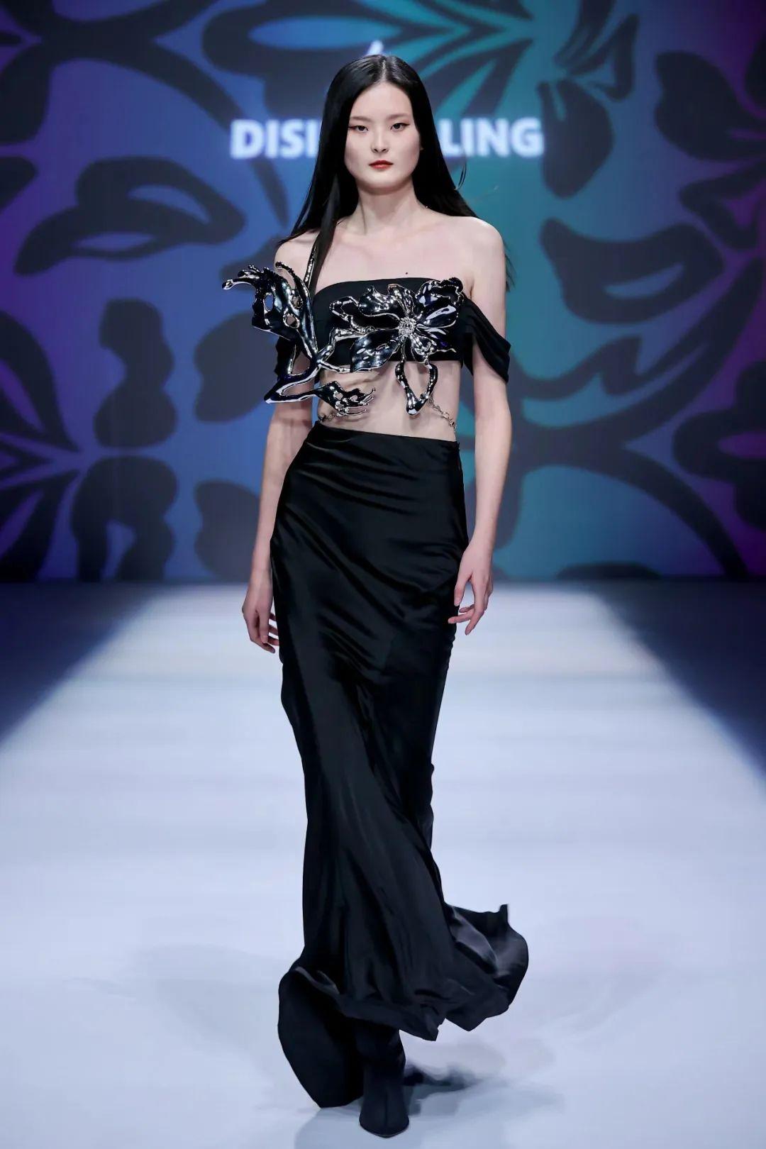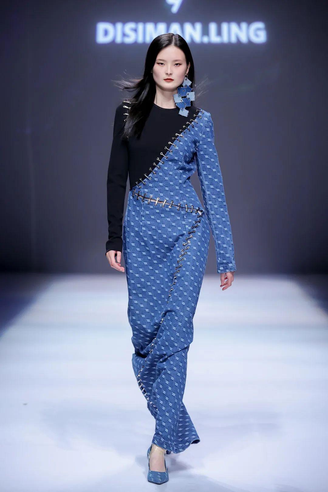 DISIMAN.LING本季主题以木槿花为灵感,强调积极进取,坚韧,遇到困难永不言弃的大女人精神,牛仔蓝通过各种拼贴,组合,转变为独具特色的设计,以品牌的LOGO图腾作为秀的压轴,通过廓形解构,层次叠加,打破沉闷,刚与柔的结合,将时尚刚柔并济的气质体现得淋漓尽致。