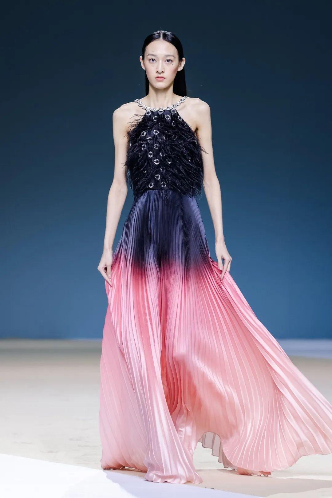 手工压褶抹胸礼服兼具个性与时尚,灵动下摆搭配蓝色系亮面,行走起来轻松又随意。梦幻的礼服裙,大胆灵动的剪裁设计,搭配珠绣、水晶等展现精巧手工艺。