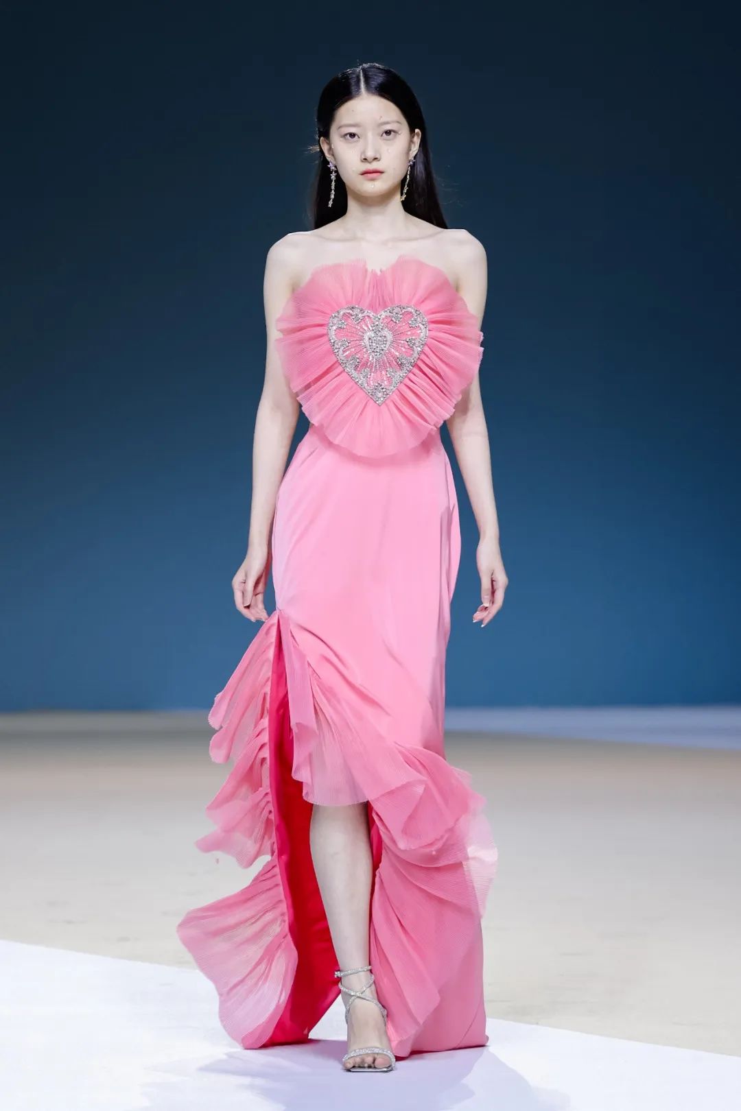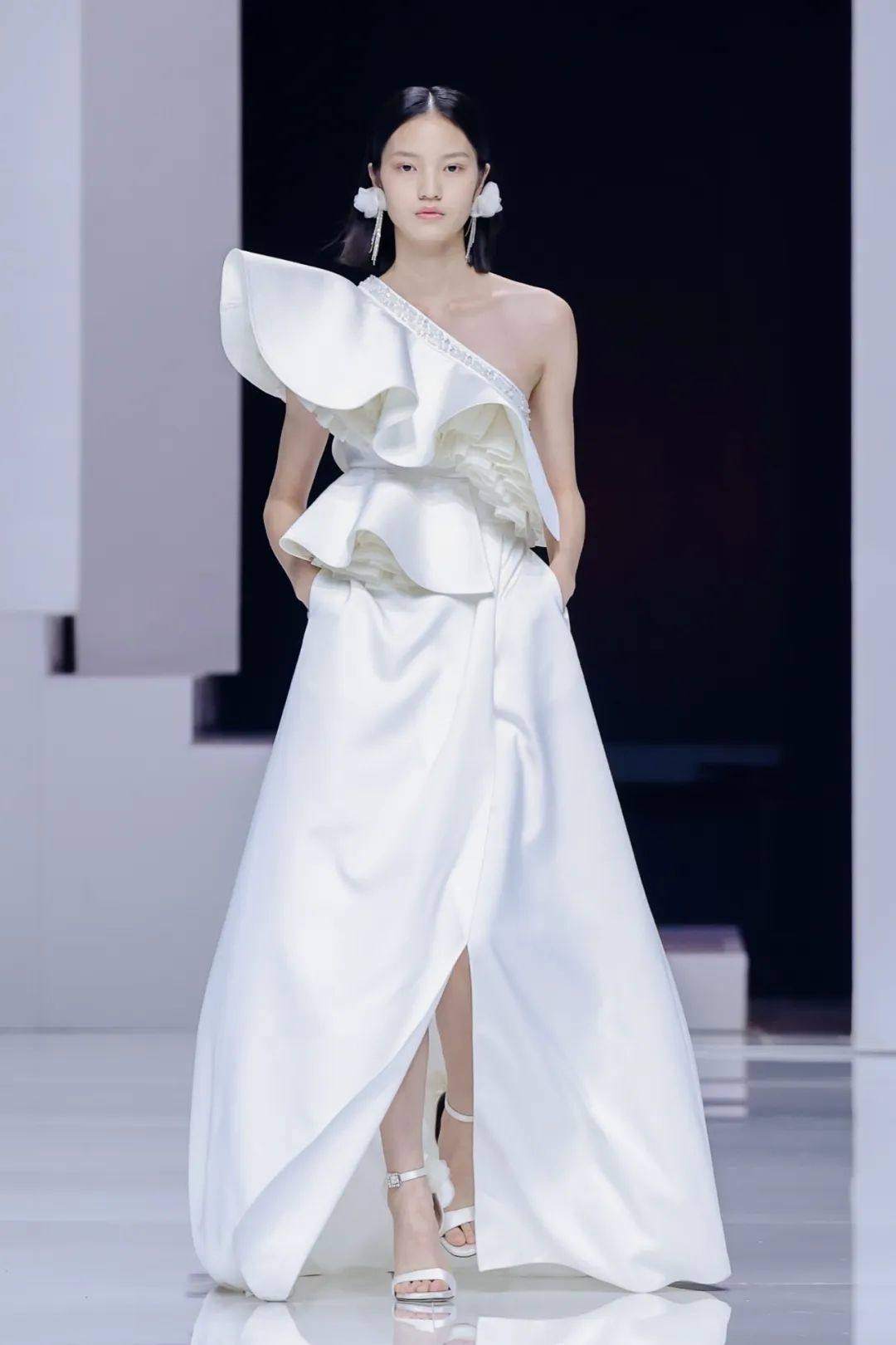 东方色彩元素与西方剪裁的结合,赋予礼服另类生命语言。品牌标志性元素——鱼尾裙、蝴蝶结、大廓形装饰的创新大胆剪裁,突破传统限制,搭配高饱和度对比色,玩出时尚新概念;不同质感间面料的碰撞表达,丰富层次,提升视觉果,宴会仪式感瞬间拉满!