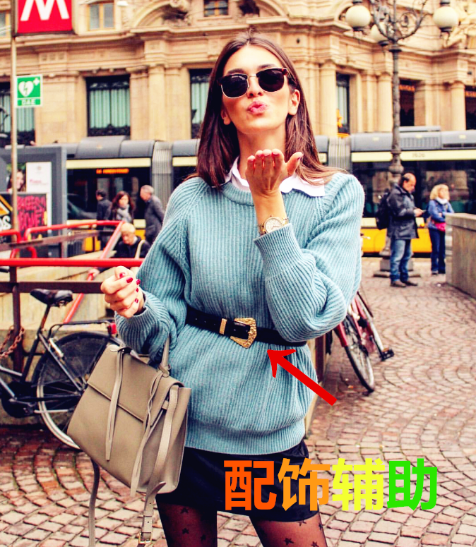 腰带+增加显瘦果:巧妙的点缀,不仅可以打造好的身材曲线,而且可以形成色彩的对比,材质的色调平衡。