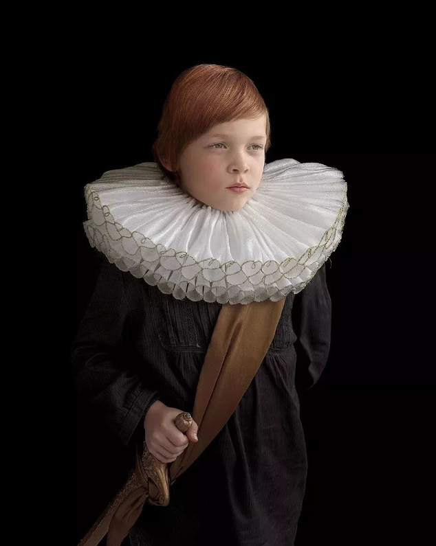 再仔细一看,这个小女孩与委拉斯开兹《宫娥》里的小公主动作、神态,发型几乎一模一样,而苏珊娜·琼曼斯对小公主公主裙进行了神还原。
