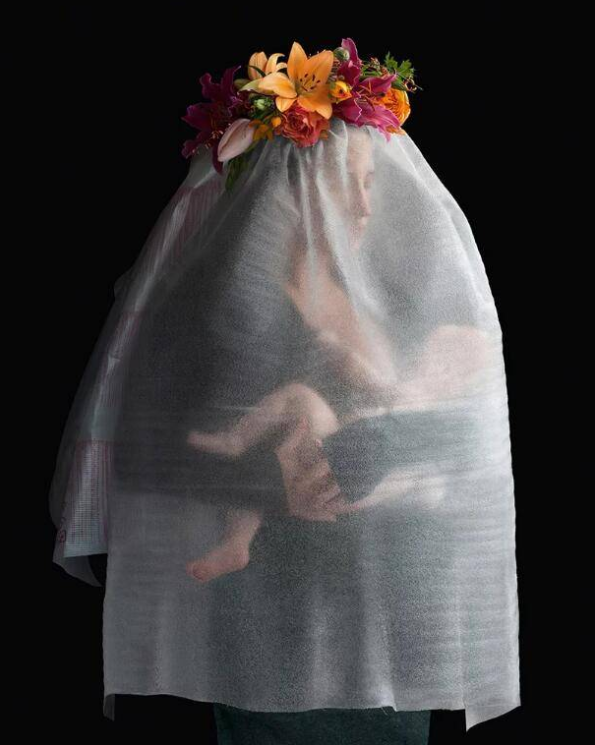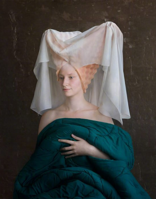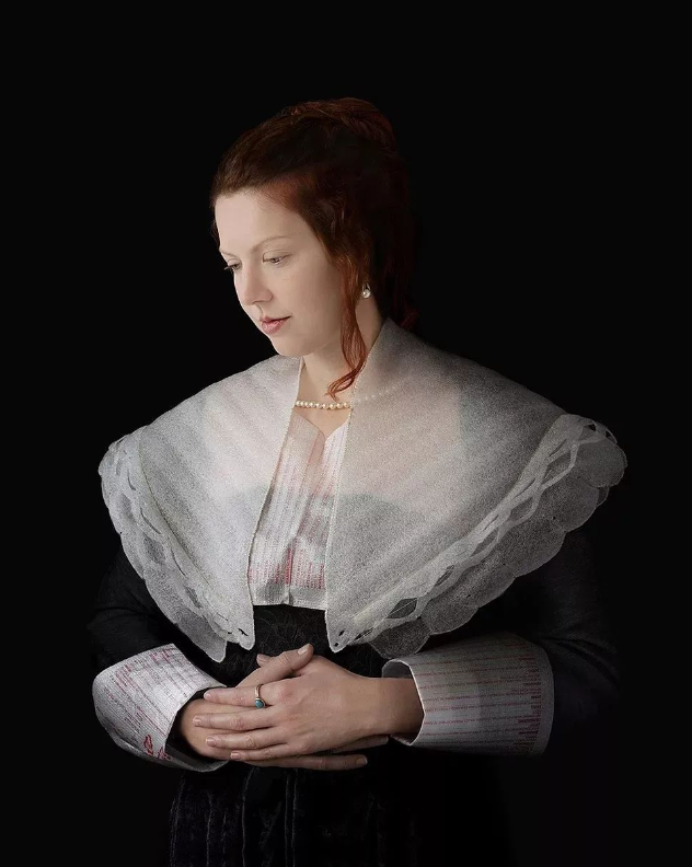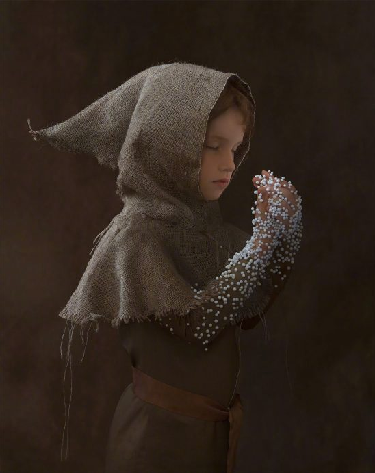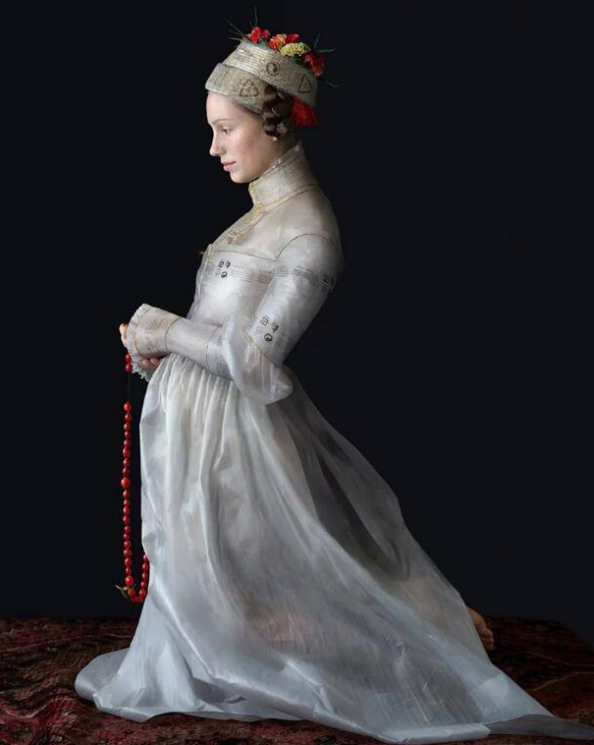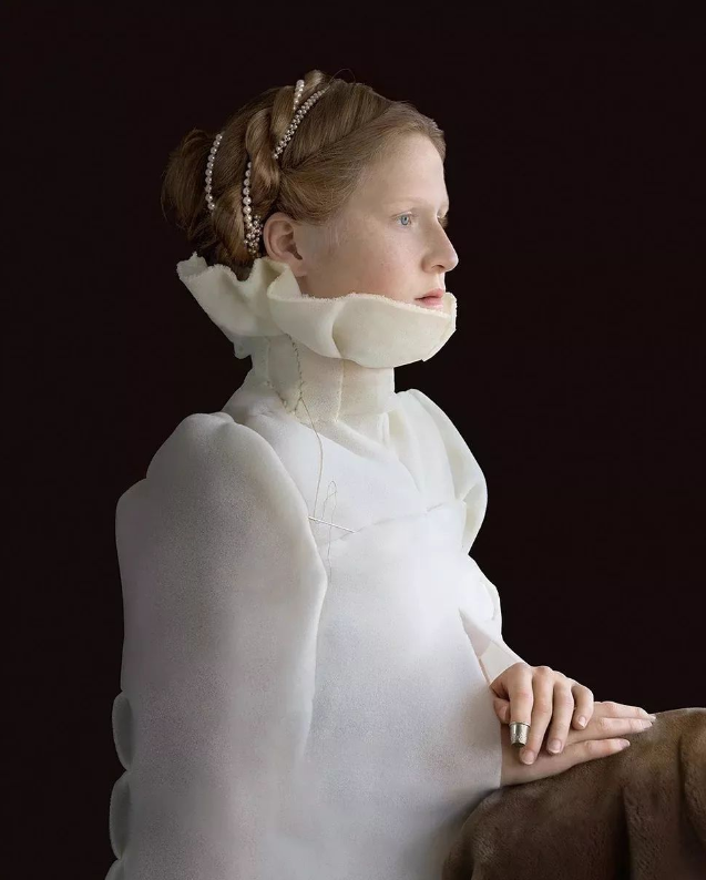 她让不同的模特穿上特制的“塑料服装”并进行拍摄,作品无论是配色、构图都宛如文艺复兴时期的油画,而“画中”一个个模特的神情特别端庄、平静,仿佛凝固着古老的时光与故事。