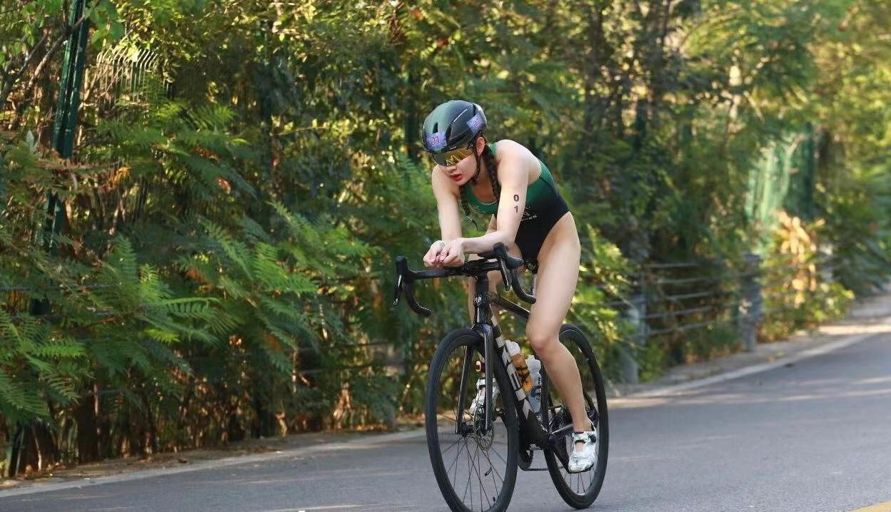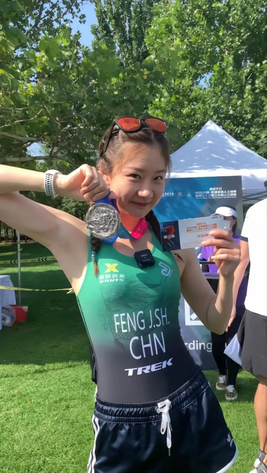 引起热议的网红阿爽现在自媒体平台有37万粉丝,真名冯竟爽,是原铁人三项队队员,第十三届全运会接力亚军。