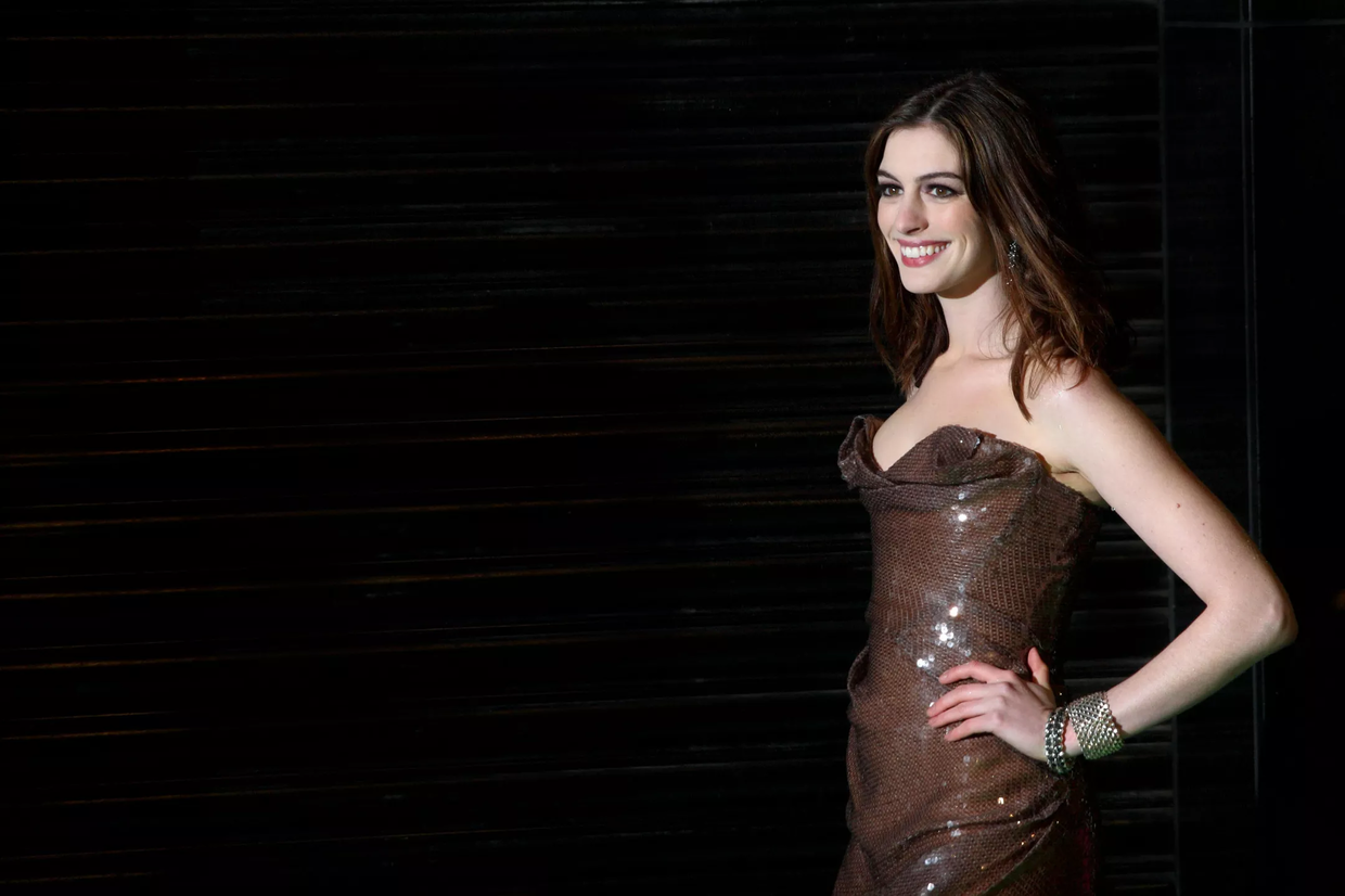 安妮·海瑟薇在《爱丽丝梦游仙境》首映式上穿的闪闪发光棕色礼服也是西太后的,这个颜色太衬她的发色和眼睛颜色了。