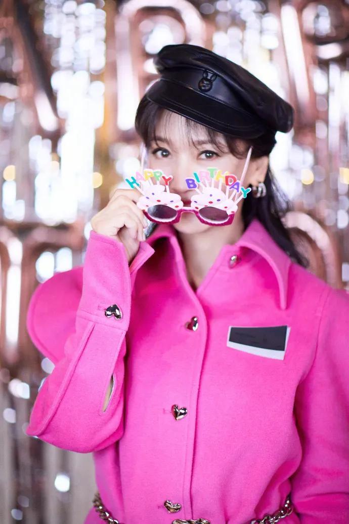 再看赵雅芝,她69岁生日照,一身粉色毛呢外套搭配一顶贝雷帽。