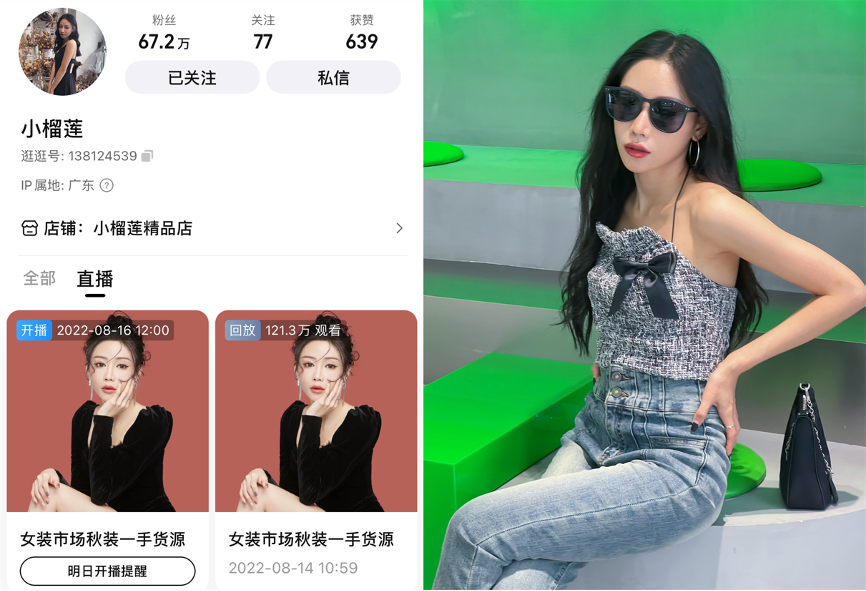 2016年,榴莲做服装设计助理的时候,一次偶然,刷到了淘宝直播。她眼睛一亮,认为自己找到了想走的路,于是和模特圈的朋友合伙,从相熟的淘宝店拿货,摸索着做起直播。