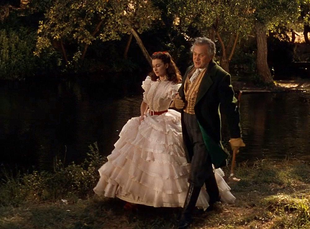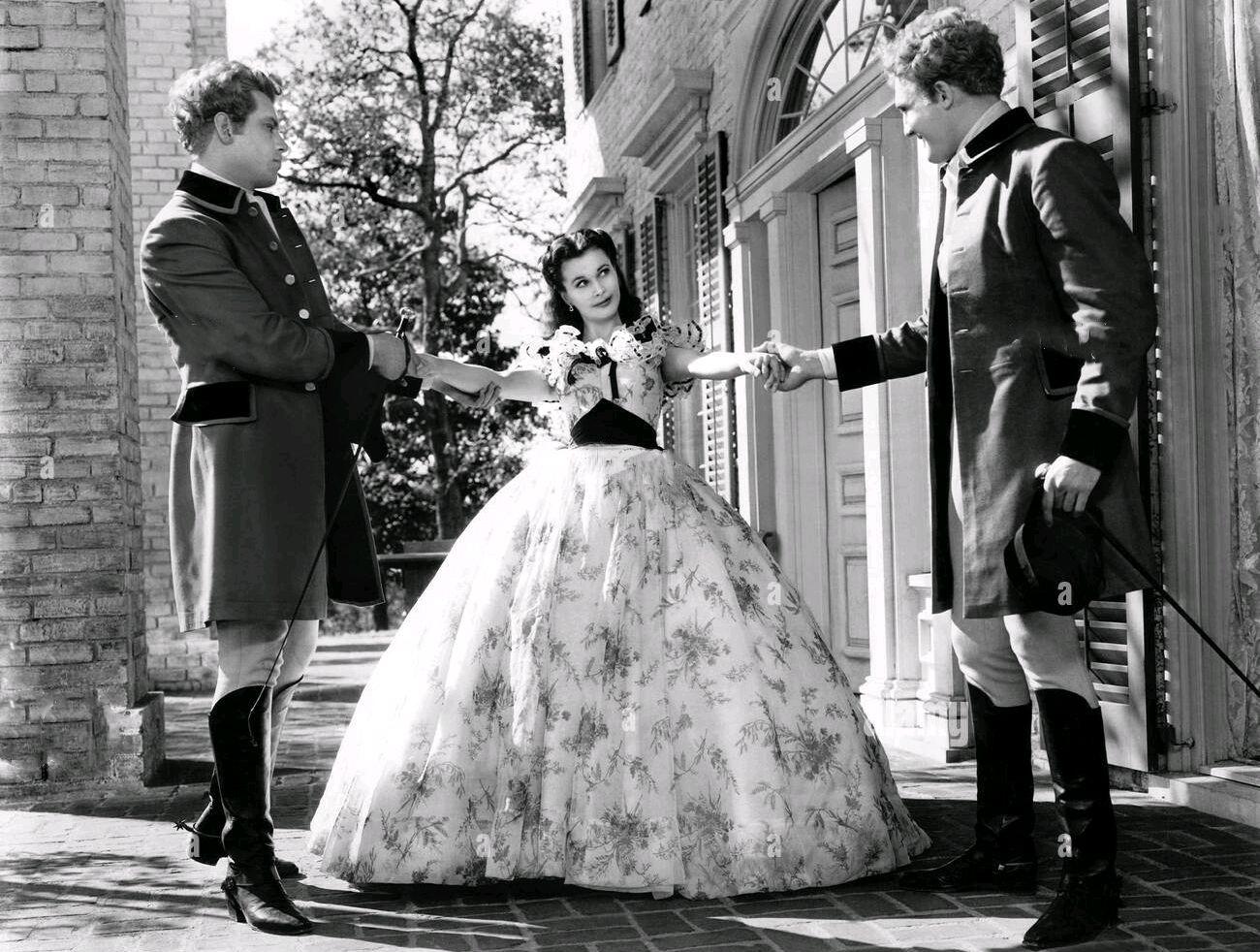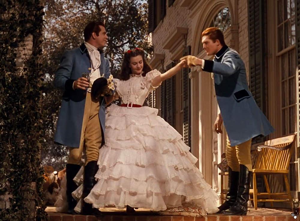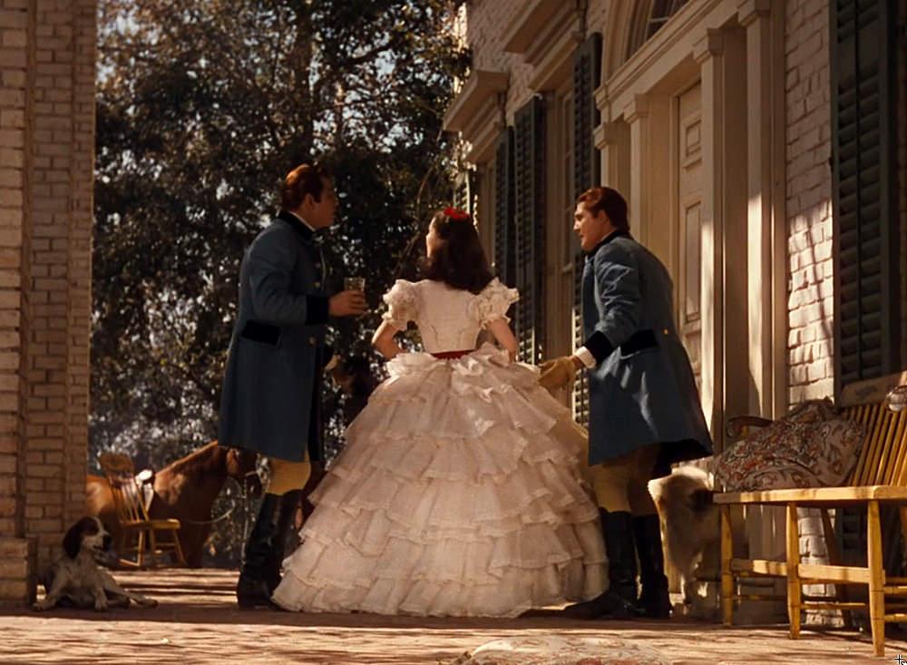 在《乱世佳人》的开场场景中,斯嘉丽招待了两个年轻的追求者,并得到了一些当地八卦:斯嘉丽爱上的男人,阿什利·威尔克斯,他将娶别人。