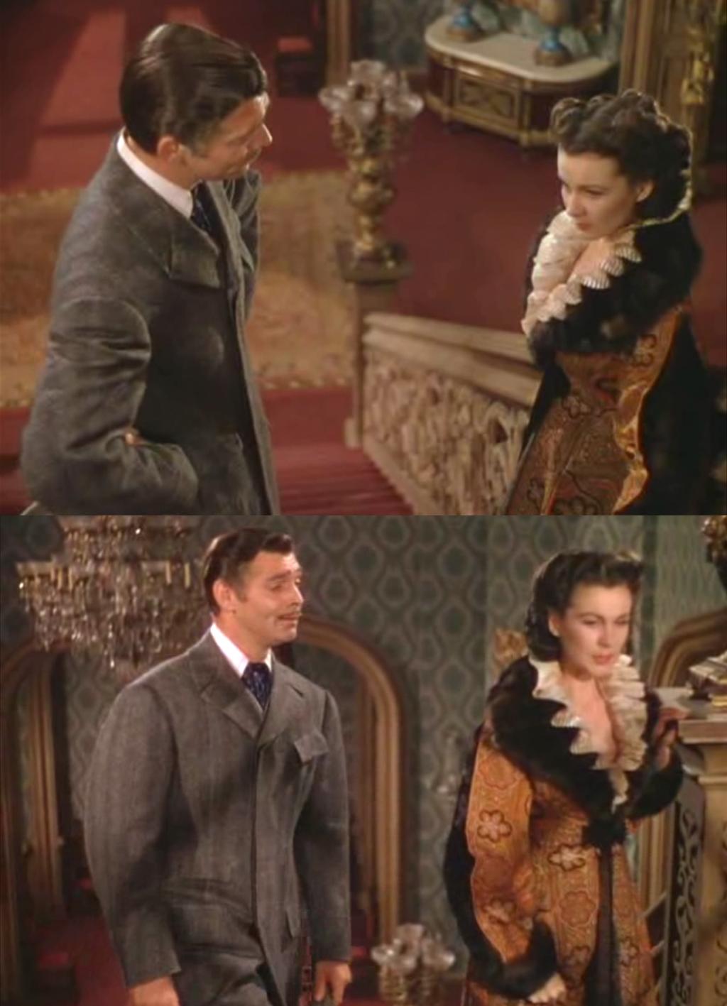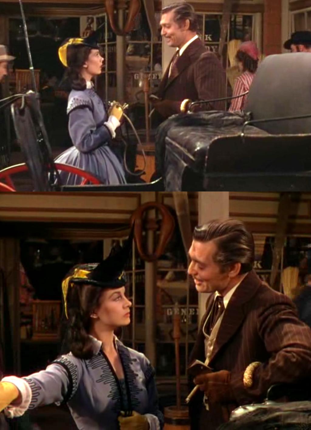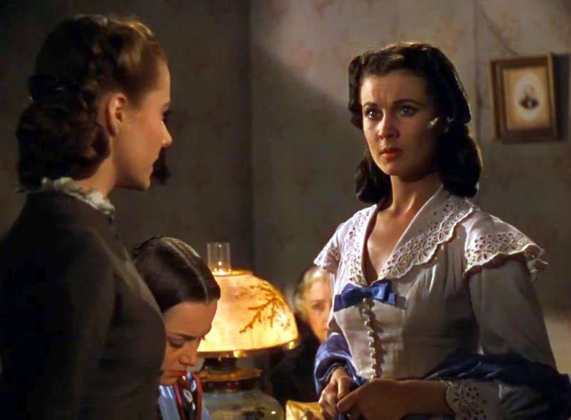 在《乱世佳人》的开场场景中,斯嘉丽招待了两个年轻的追求者,并得到了一些当地八卦:斯嘉丽爱上的男人,阿什利·威尔克斯,他将娶别人。