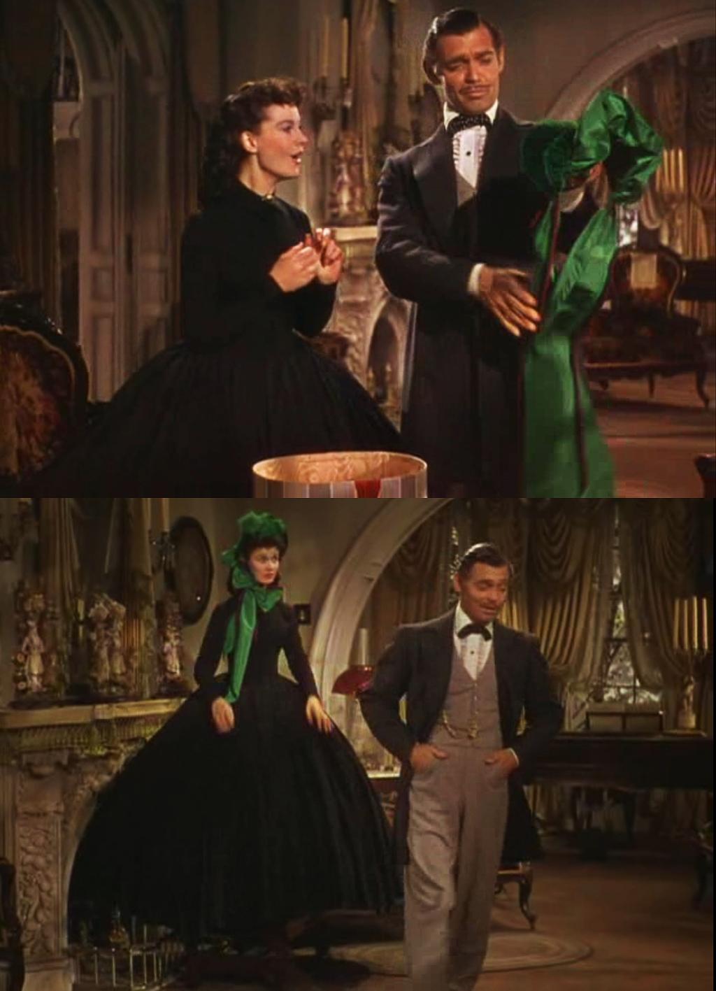 实际上,这部电影的服装设计有趣的方面之一是设计师如何使用这两种颜色作为线索让观众了解斯嘉丽的想法。