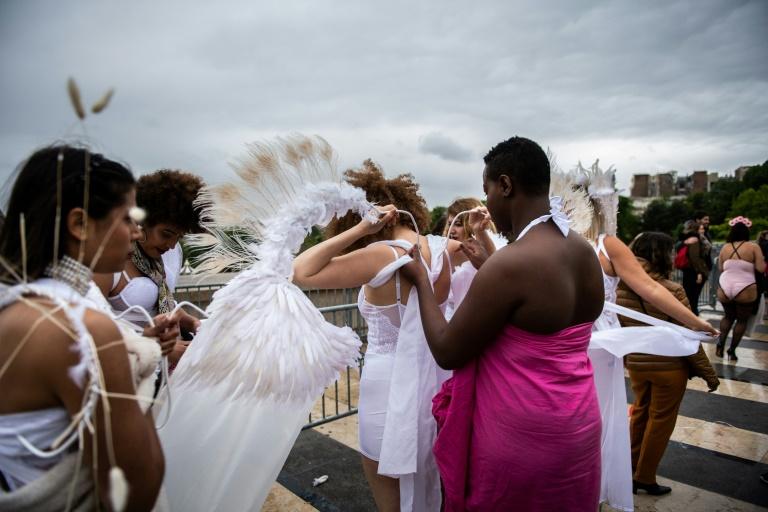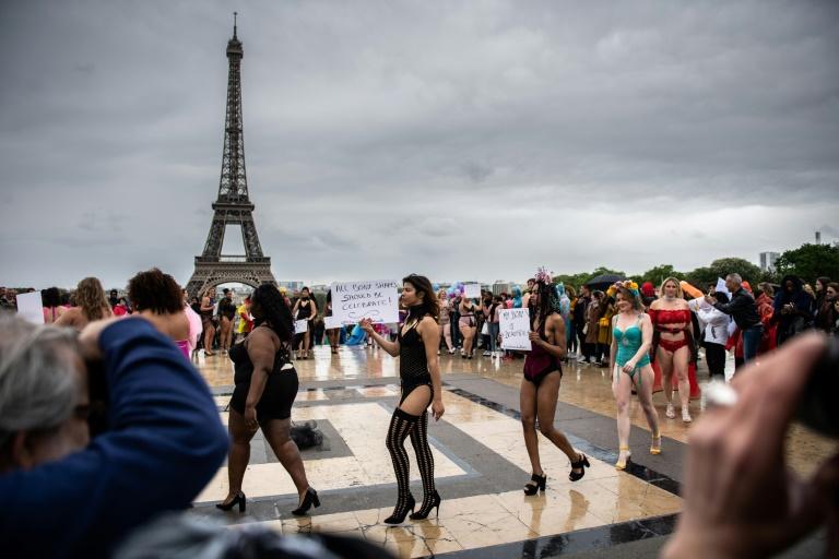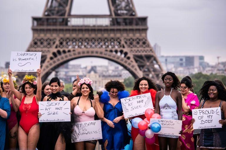 据法新社报道,4月28日法国巴黎埃菲尔铁塔旁举办了一场 “身体自信”时装秀,参加的都是大码模特和普通素人。
