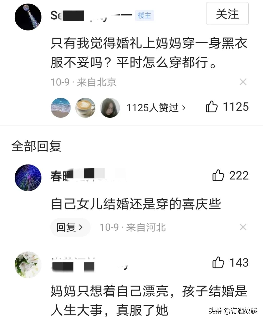 但是这位母亲送嫁时身穿黑色西装,引发大家热议,认为送嫁时穿黑色有点不合时宜。