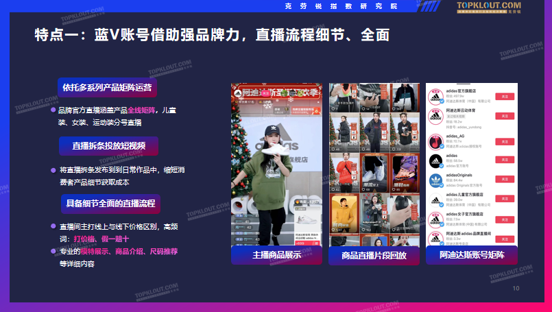 特点一:蓝V账号借助强品牌力,直播流程细节、