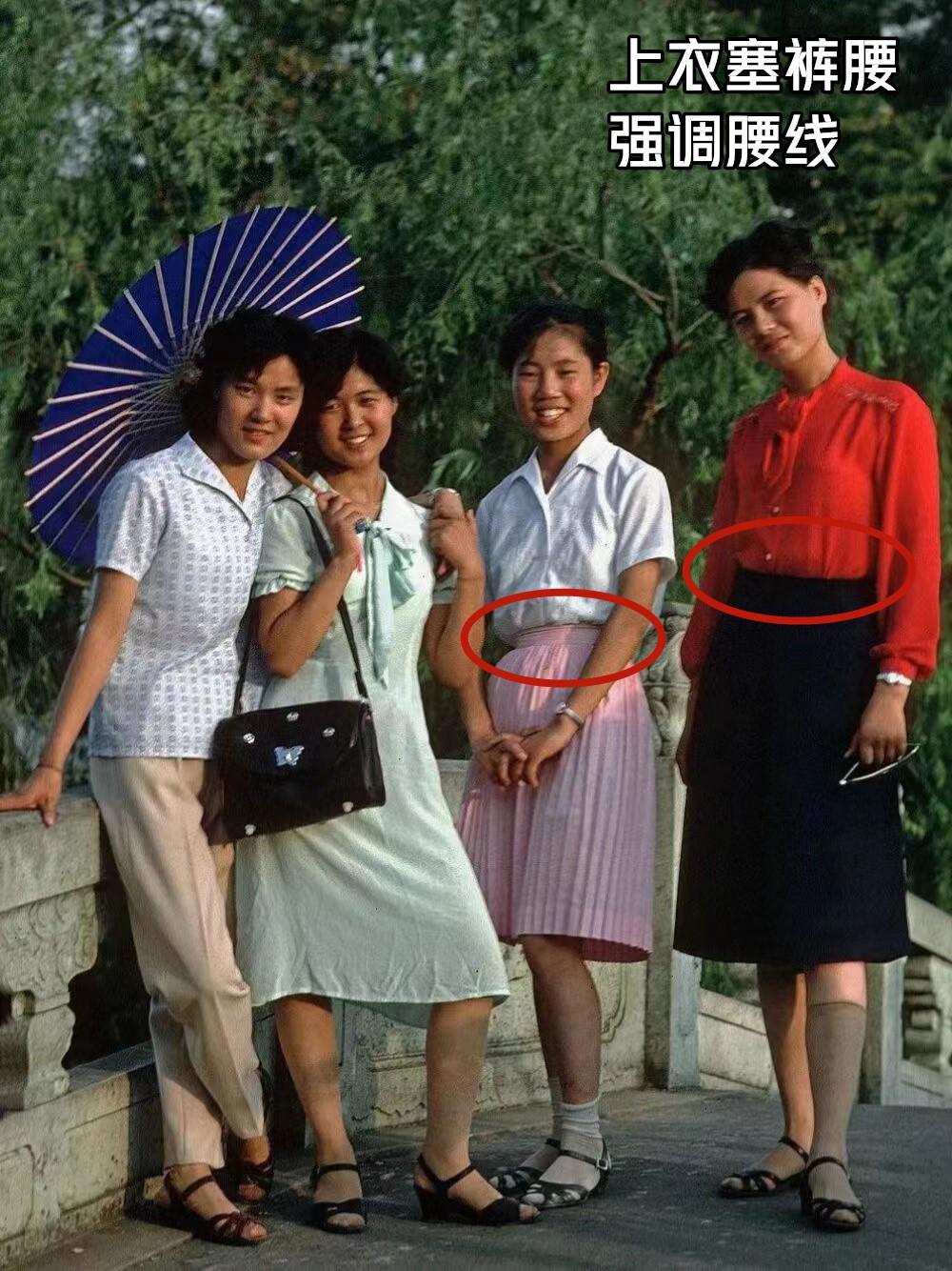 看八九十年代的老照片,只要是穿裙装,几乎都是收腰连衣裙,只要是半身裙,上衣必塞裤腰,爸妈们对于强调腰线有多执着呢?版型收腰还不够,还要用一根饰物放在腰间,来进一步凸显腰线。