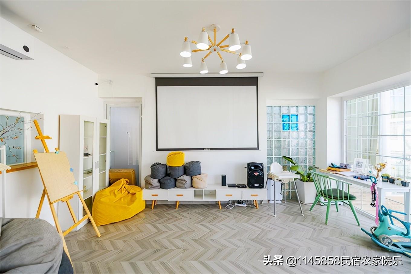 宽阔无比的大客厅,让聚会酣畅到,采光充足,各种家用电器也都是新的。娱乐设施有,电动麻将机、三国杀桌游、KTV音响、100寸投影。