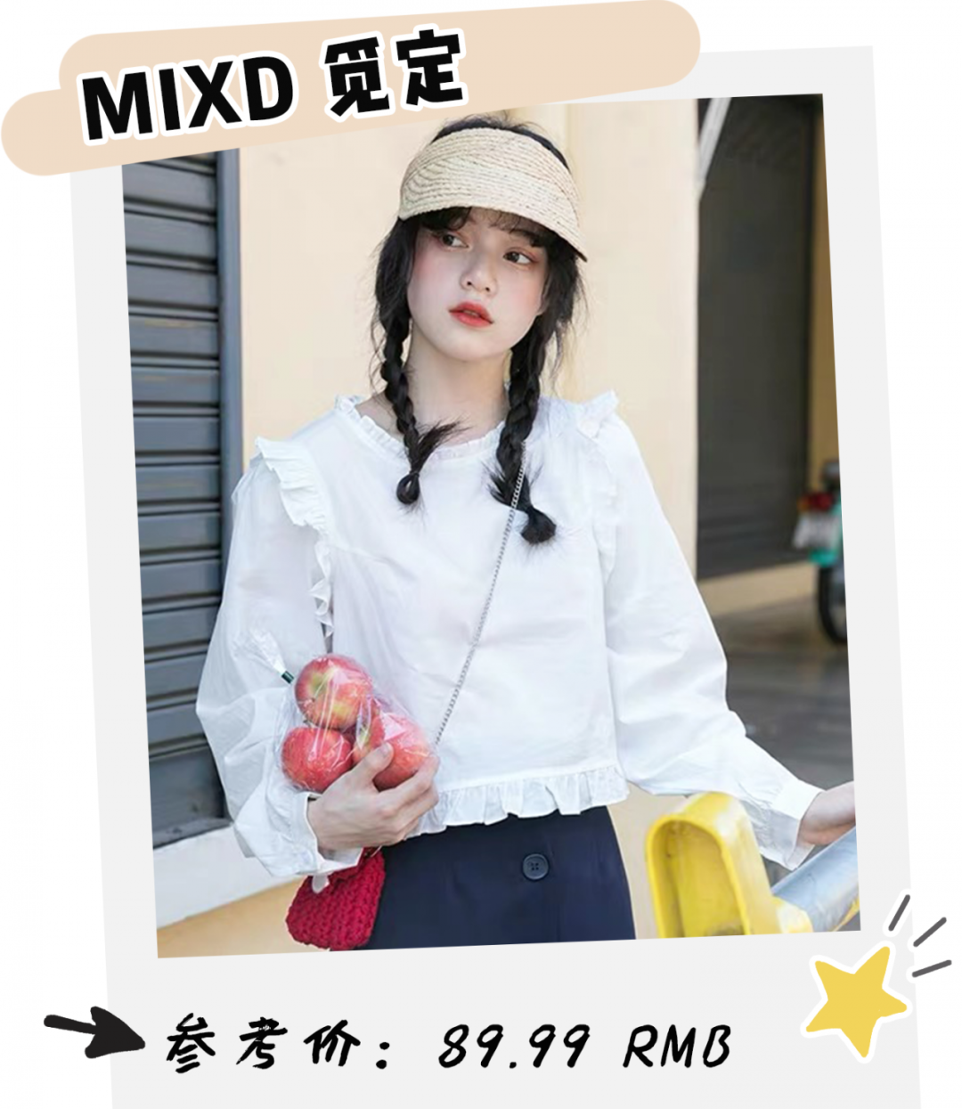 拉夫领上衣,我们看重的是那种小立领的感觉,木耳边点缀,复古的宫廷感浓郁,喜欢的女孩子们可以试试看,学会选择适合自己的款式,越穿越美!