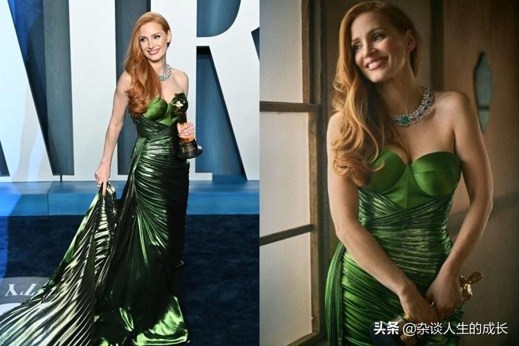 有别于较为正式的典礼,庆功宴派对的尺度似乎更大,名人们的服装辣度也跟着升级。 首先夺人眼球的就是近年热播美剧《高校十八禁》(Euphoria)卡司,包括千黛亚在内,许多要角也都合体登场,让粉丝又惊又喜。 本届影后洁西卡雀丝坦也换上另一套绿色绮面礼服,手拿小金人,感受得出她获得肯定的喜悦。 同样选择飘逸元素的还有身穿粉色GUCCI礼服的达珂塔强生,火速换装的凡妮莎哈金丝则放下长发,改以黑色薄纱裙出席。