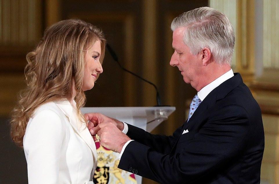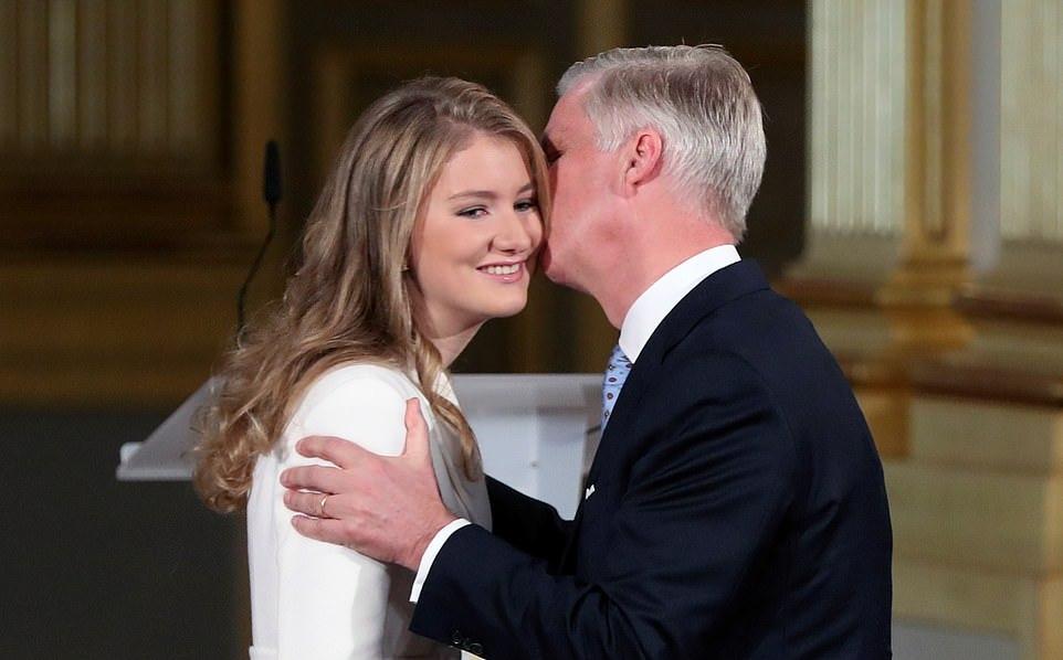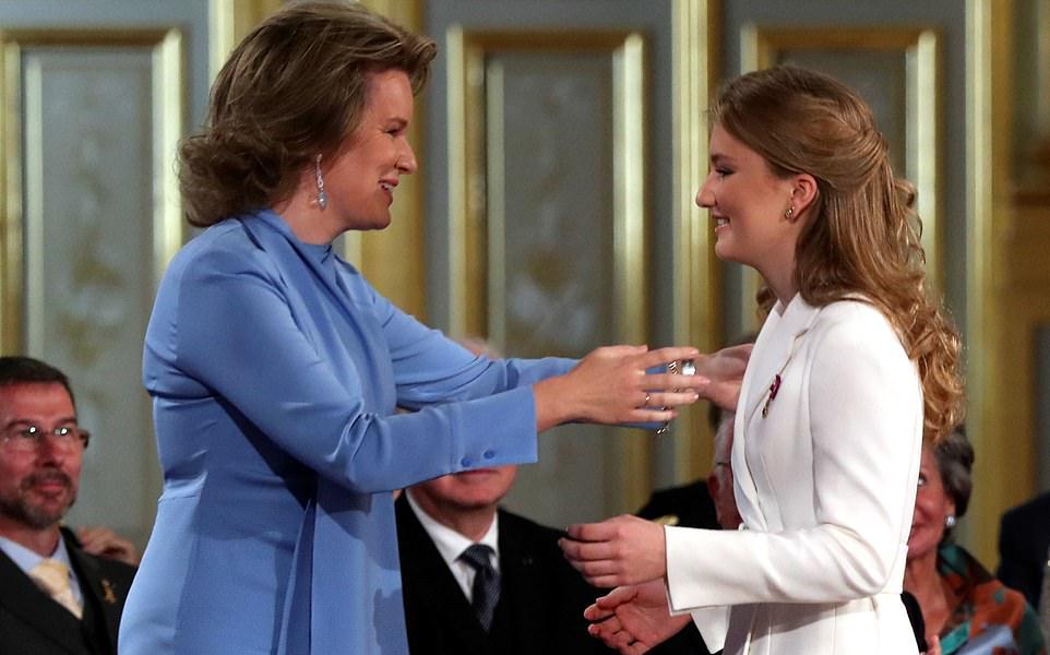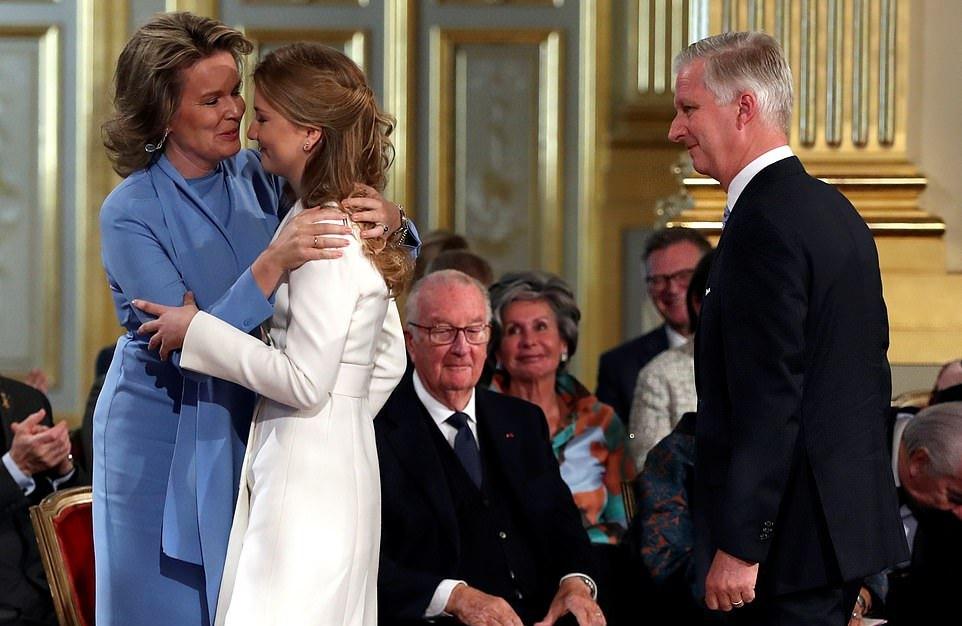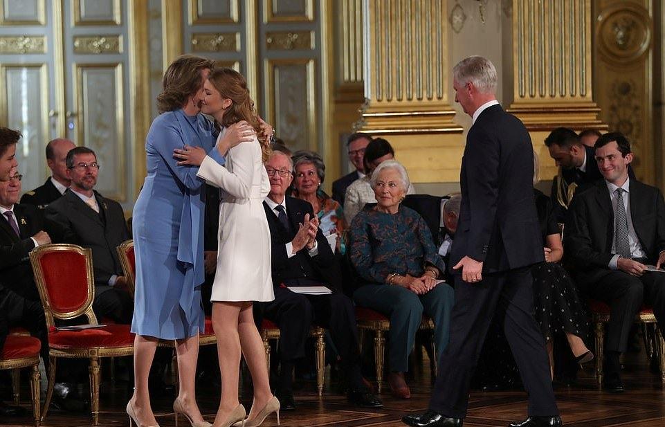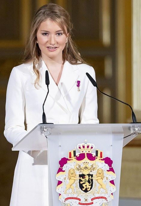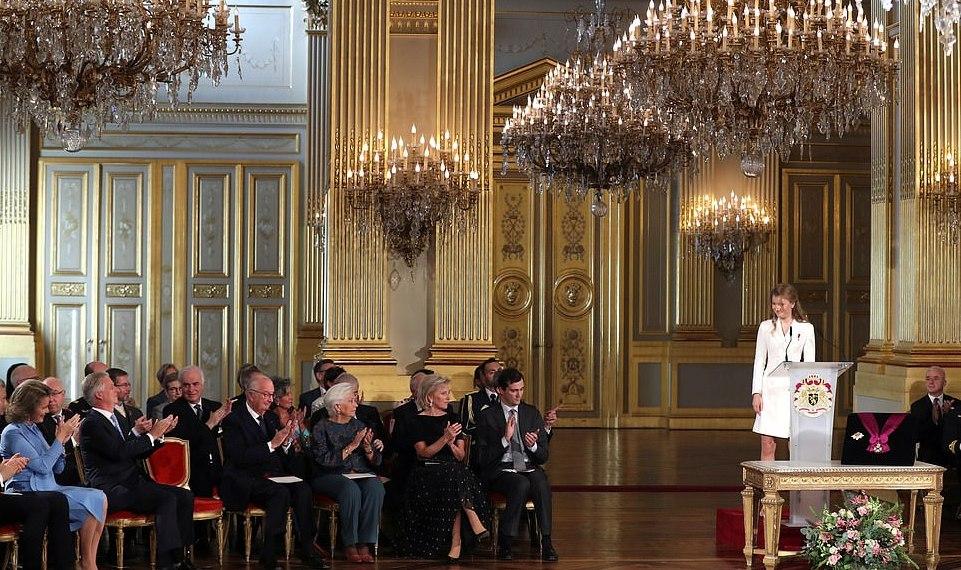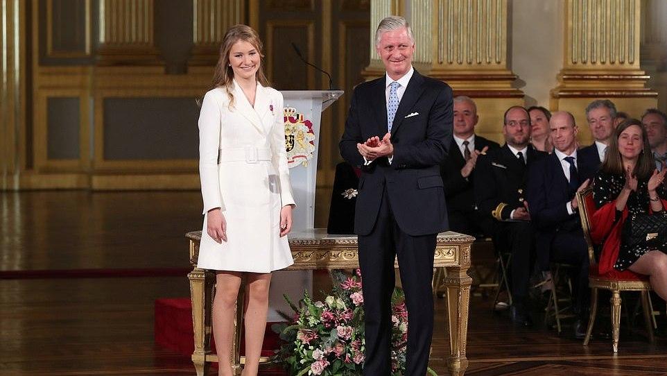 59岁的菲利普国王和46岁的玛蒂尔德王后一起参加了庆祝活动,马蒂尔德王室更是激动的留下了泪水,看到自己的女儿在台上发表演讲,倍感欣慰啊!比利时王后身穿高贵的蓝色套装,保养得好,自带高贵感。而这个大公主也是遗传了父母的好基因,当天虽然打扮得比较成熟,但是脸上依然还是稚嫩的。
