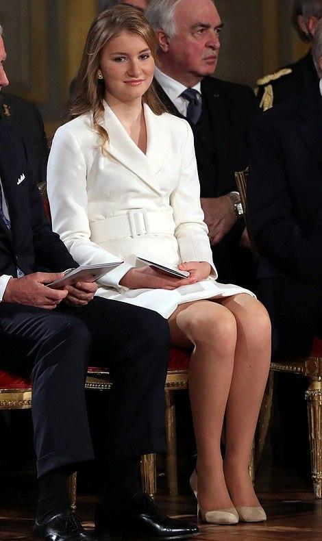 可能对于一个普通的女孩子来说,18岁意味着成年了,而对于比利时的女王储伊丽莎白来说,她肩上的责任是如此重。当天,大公主身穿一件白色的西装连衣裙亮相,这样偏中性风的风格尽显公主的霸气,也是符合她未来女王的身份呢!