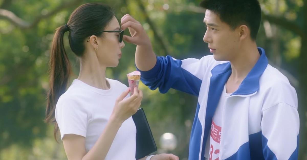 还有两人在体育馆训练时,男主角的眼睛进了东西,在逆光下,女主角慢慢靠近男主,同样能够让观众尝到甜味,这就满足了观众对一部甜宠剧的期待。