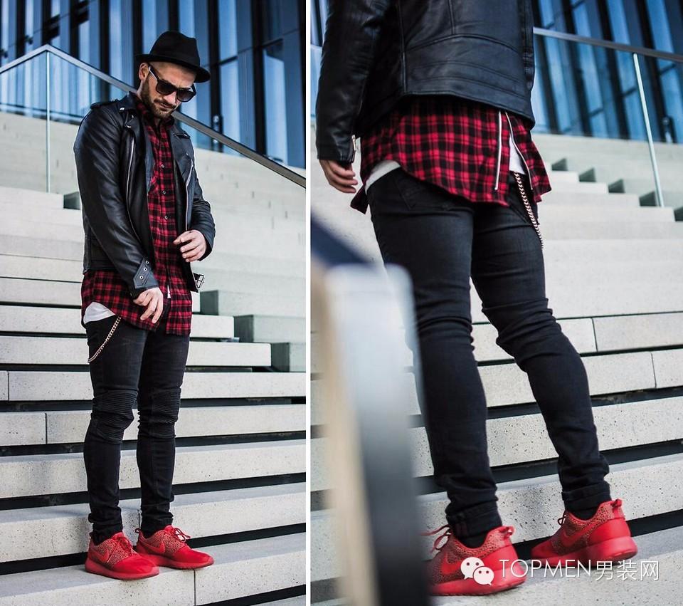 一片红色太过艳俗?用红色格纹衬衫也能营造出画龙点睛的果。↓↓↓