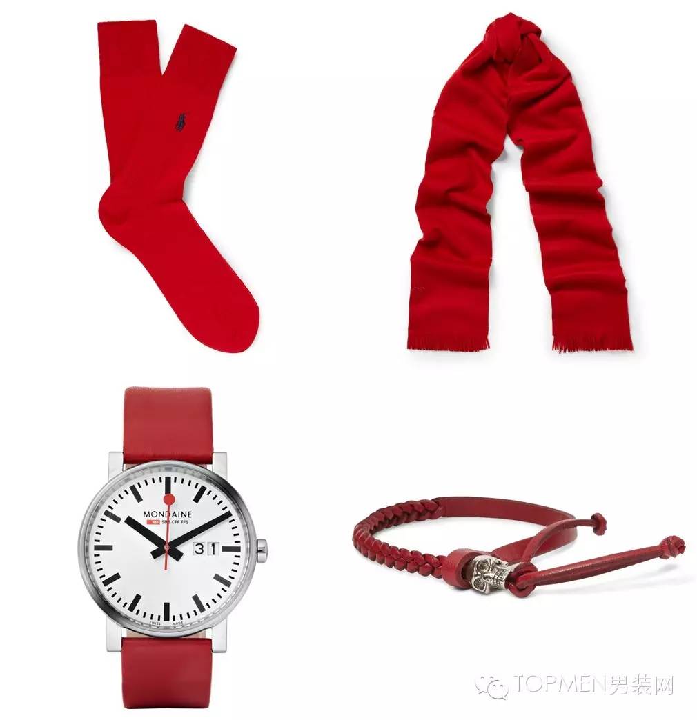 不喜欢穿上大片红色单品的型男,可以透过红色的小配件点缀整体。
