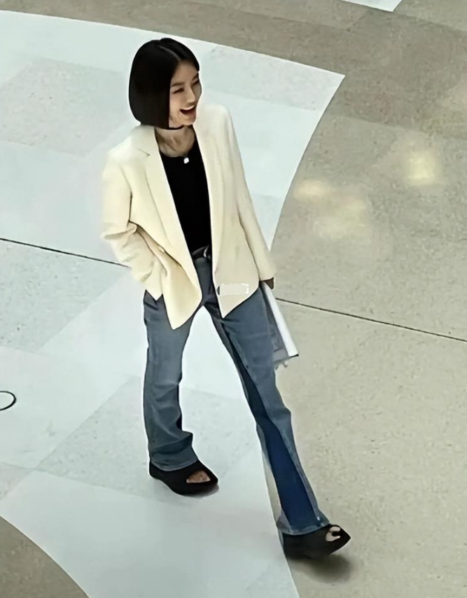 路透中一共两套造型,都是以西装为主题,但不缺设计感。反而是她那双坡跟黑色拖鞋,不知道是日常私服还是剧中搭配,这两套造型都是这双鞋子搭配,看来这双鞋子不仅好搭配,还很舒服,肯定会有粉丝扒同款的。