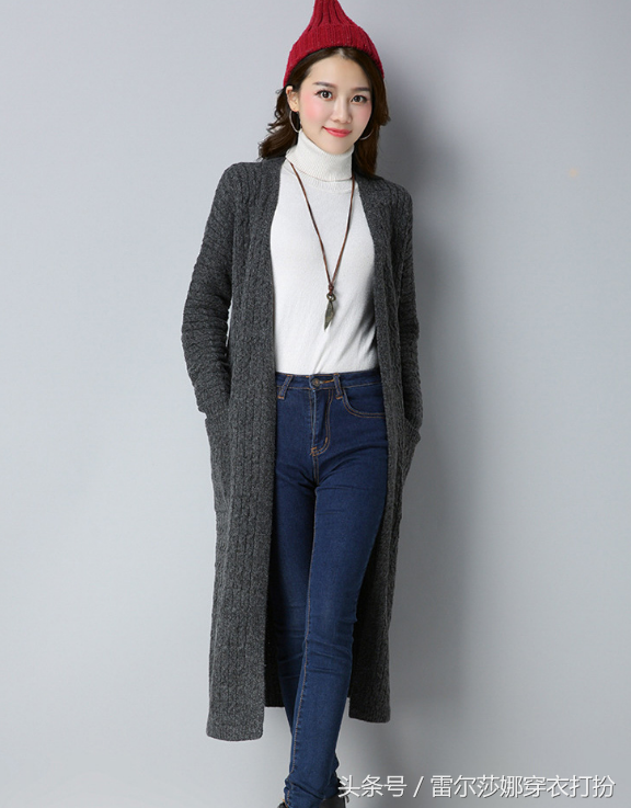 这款均码针织外套中长款,轻奢优雅,时尚而端正,配上一条紧身的牛仔裤,和一双皮鞋搭配