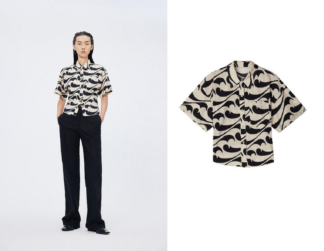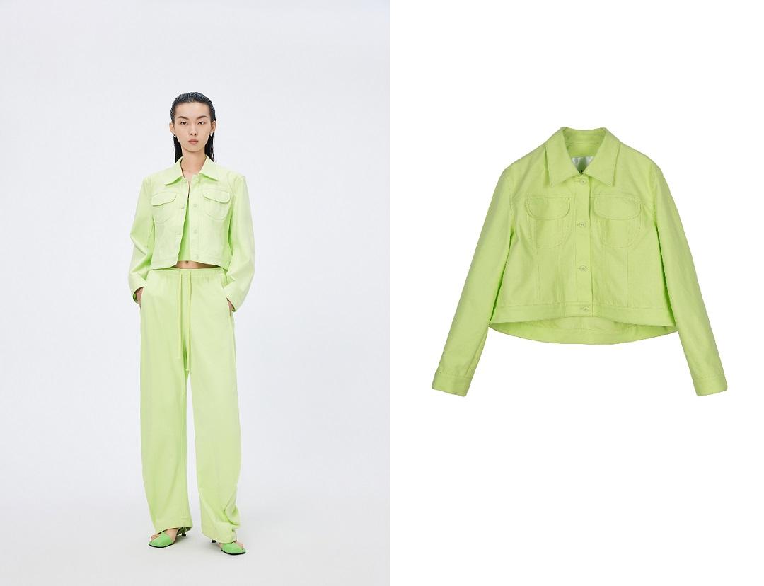 海滩主题的荧光黄配色充满活力,烘托出春天生机盎然的自然气息与轻松愉快的整体氛围。海滩图案将海浪、跳水运动员、躺椅上的条纹元素有秩序地排列,配合对撞的配色以及云朵细节,年轻趣味感十足。上短下长的设计带来春日少女感,在视觉上拉长身形线条,修饰身材比例。整体尺度回缩,短比例款式增加,廓形和比例更丰富,为乍暖还寒的春季提供更多的搭配和选择。