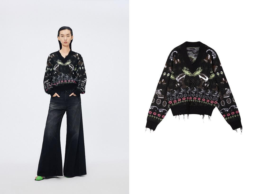 赞比亚主题表达过去、现在与未来融合的设计理念,复古的配色,时尚现代的造型将思绪带到非洲的野性沙漠。平铺的八芒星图案充满未来感和规律感,与图案的外放、张力感形成鲜明的对撞,通过线条及图案的重构,趣味感十足。斑马、豹纹与插画等源自赞比亚的各式元素以看似随意的方式组合在一起,碰撞出奇妙的火花,形成强烈的视觉冲击,展现出非洲热情、奔放的特质,让人感觉到满满的生机和活力感。不同面料的搭配使用带来质感的升华,同样依靠材质重构的方式展现精致的面料肌理,上身果更富层次感。磨损、毛边、编织等各种质感的重塑设计,带给人酷酷的、不羁的感受。夏西服与冷衫等轻薄款式使该主题品类应季性更强,适合春季穿着。