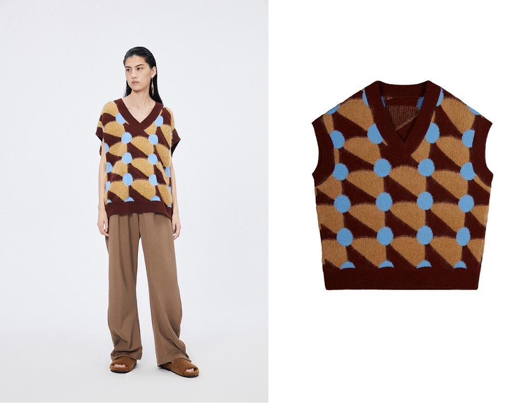 本季新品的四个主题按四个旅行目的地命名,分别是“东欧”、“埃及”、“赞比亚”和“海滩”。四个主题特色鲜明,令热爱旅行的都市人心驰神往,思绪起航。东欧主题系列突出理性几何印花,以变形格纹组成规整的几何图形,场景印花和诙谐笑脸图案为整体加入趣味元素,在一丝东欧冷酷气息之下描摹出灵动与时尚。对比鲜明的配色让东欧的优雅、理性与自由实现巧妙融合,展现都市人内心中并存的秩序与创造力。建筑廓形令人联想到东欧建筑的艺术化线条,礼服感造型大气精致,摩登感十足。