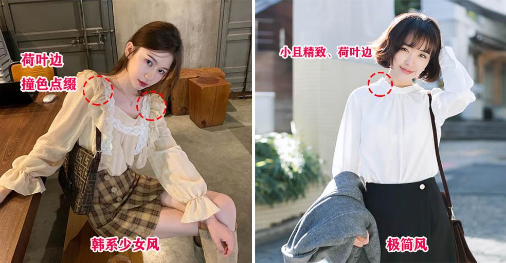 我们可以对比两款有着相同元素的上衣,显然韩系少女风的款型设计感高于极简风。而极简风的打底衫则会更注重剪裁,没有显眼的荷叶边元素,但同样可圈可点。40岁,50岁穿起来照样可以一鸣惊人,很显穿搭品质。