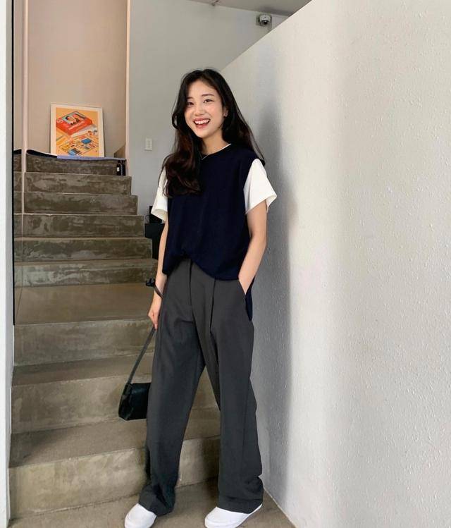 夏季见得多的便是T恤搭配阔腿裤了,而且因为阔腿裤本身就比较适合腿粗、腿不直的女性,和T恤搭配它是很具有包容性的,遮肉又显瘦,一点没有闷热感,清爽过夏天。