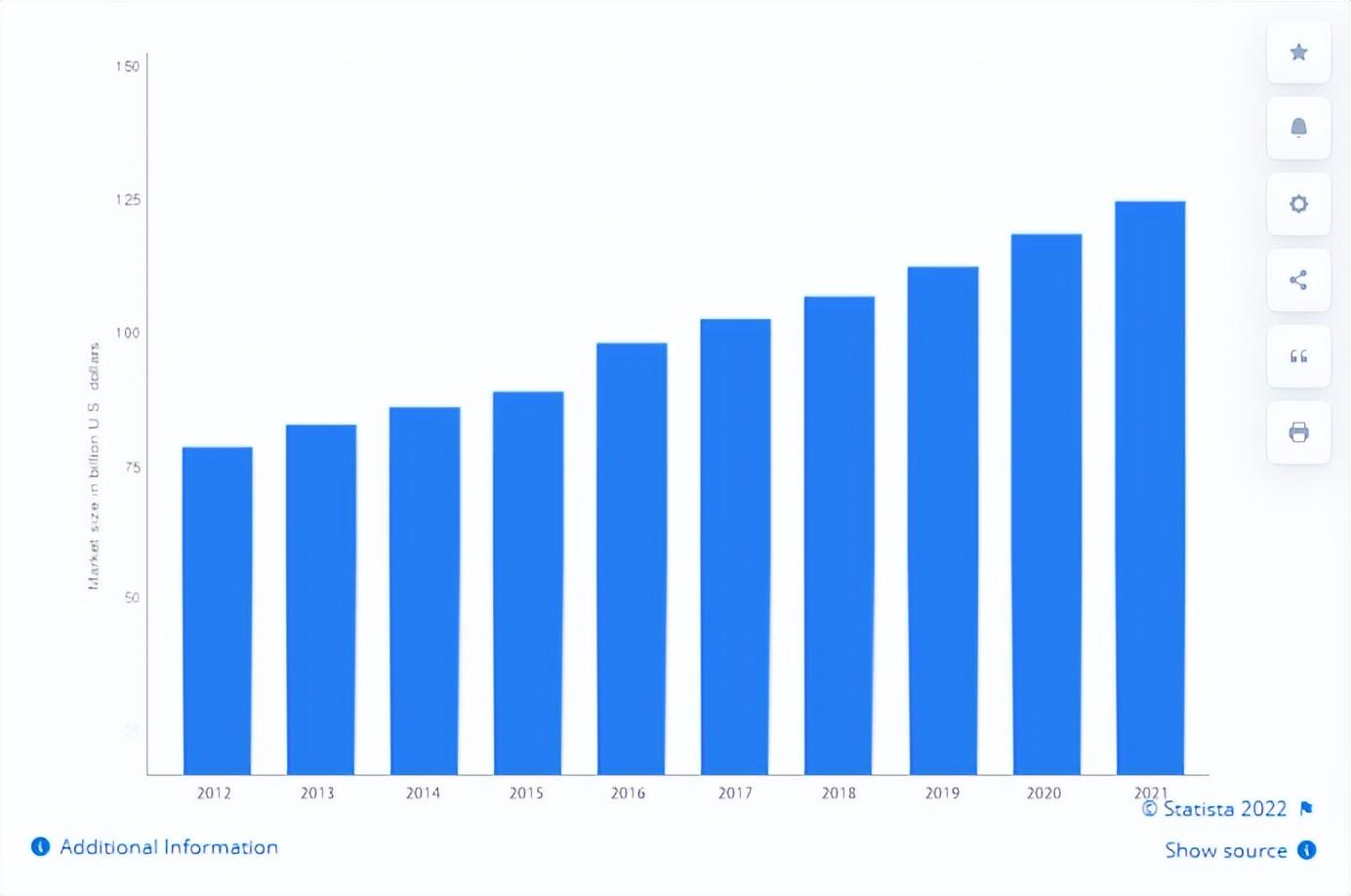 该统计数据显示了2012年至2021年非皮革包袋市场的市场规模。从2017年起,市场非皮革包袋市场价值已经超过1000亿美元。