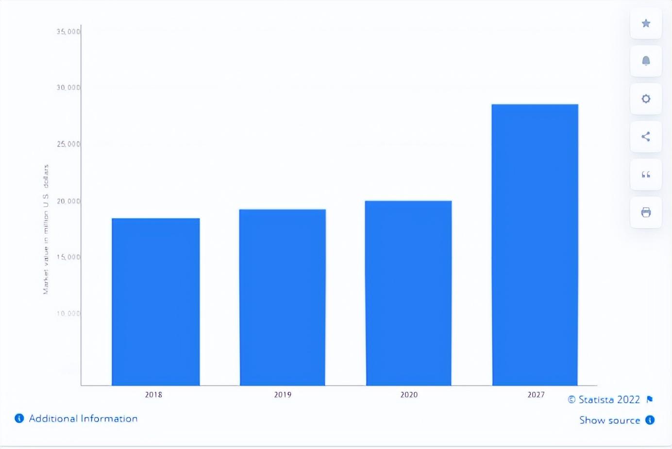 统计数据显示,2018-2020年,手袋、钱包市场价值稳步增长,2020年超200亿美元。预测显示,手袋、钱包市场价值预计到2027年将达到约286亿美元。