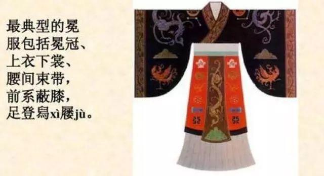 据传说,上古时期黄帝与大臣胡曹和伯余设计了中国古代早的服饰,上衣下裳,上衣如天,用玄色。下裳如地,用黄色,以此表达对天地的崇拜。尤其是在祭祀天地的时候,黄帝穿着冕冠章服,举行隆重的祭祀活动,后来这种仪式被后世继承下来。所以,在《辽史》当中有这样的记载:“汉服,黄帝始制冕冠章服,后王以祀以祭以享。”
