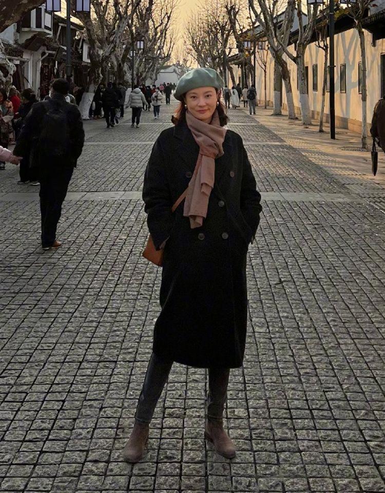 有了身材高挑的优势,刘芳菲身穿黑色大衣气场全开,搭配小脚裤和短款皮靴,“上松下紧”展现了身材特点,佩戴围巾和贝雷帽,让整体造型既有问题也有时尚风度!