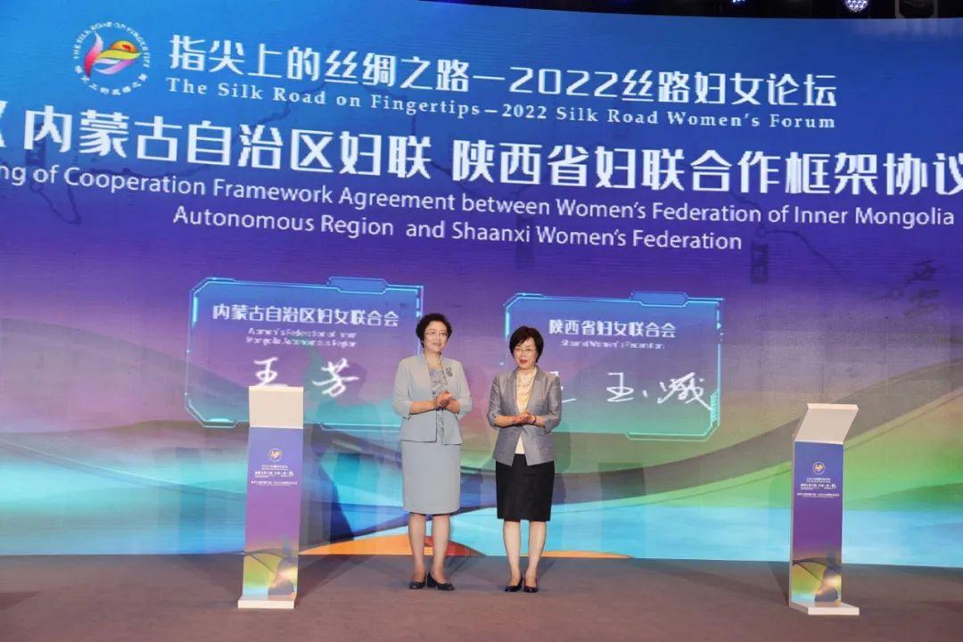 开幕式上,内蒙古自治区妇联、陕西省妇联共同签署《内蒙古自治区妇联 陕西省妇联合作框架协议》,明确双方将在引领妇女儿童和家庭践行绿色生态文明理念、建设妇女儿童友好城市、产业扶持、人文交流、人才培养、困境妇女儿童关爱等方面开启务实合作,团结引领妇女和家庭实现自身发展、积极投身“一带一路”建设,携手共话丝路新篇章。此次框架协议的签订必将进一步推动双方合作向更深层次、更宽领域、更高水平拓展。双方表示将紧紧围绕协议内容,进一步完善体制机制,在参与“一带一路”建设中进一步加深友谊、互学互鉴、增进合作,合力在贡献女性智慧力量、促进妇女儿童发展上实现更大作为,以优异成绩迎接党的二十大胜利召开。