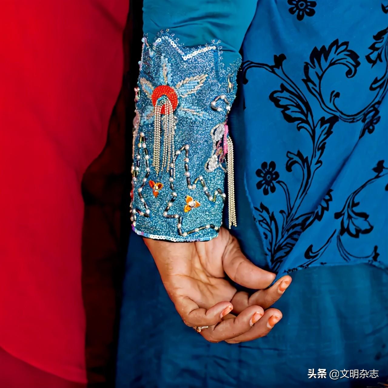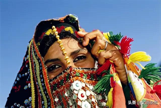 ◎ 贝都因女子的长衫、外衣、斗篷和面罩上都喜欢绣制多种花色和图案。除此之外,她们还喜欢佩戴各种首饰,手镯、脚环、戒指、项链、鼻环以及用金属、兽角、珊瑚和玻璃等材质制作而成的胸饰。