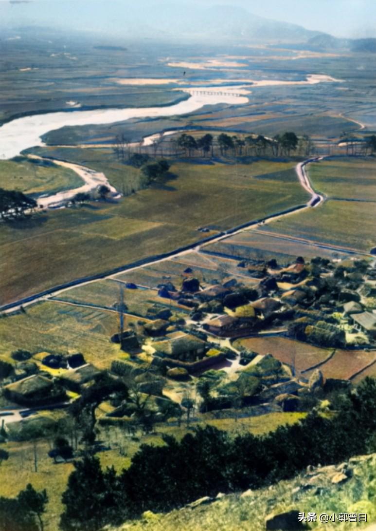 站在山上向下眺望,上世纪20年代朝鲜的乡下风光一览无余。远端可见连绵不断的连塔峰,山的后方便是金灿灿的海滨。近一点的地方可以看到几处朝鲜乡下的民宅。一条河流从平野穿流而过,原本恬静的乡村景色显得更加静谧美好。