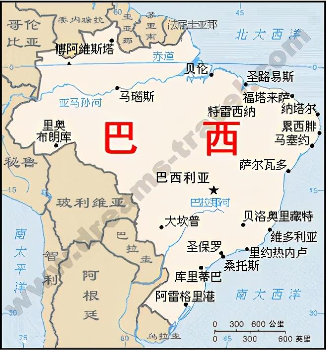 巴西主要城市分布图